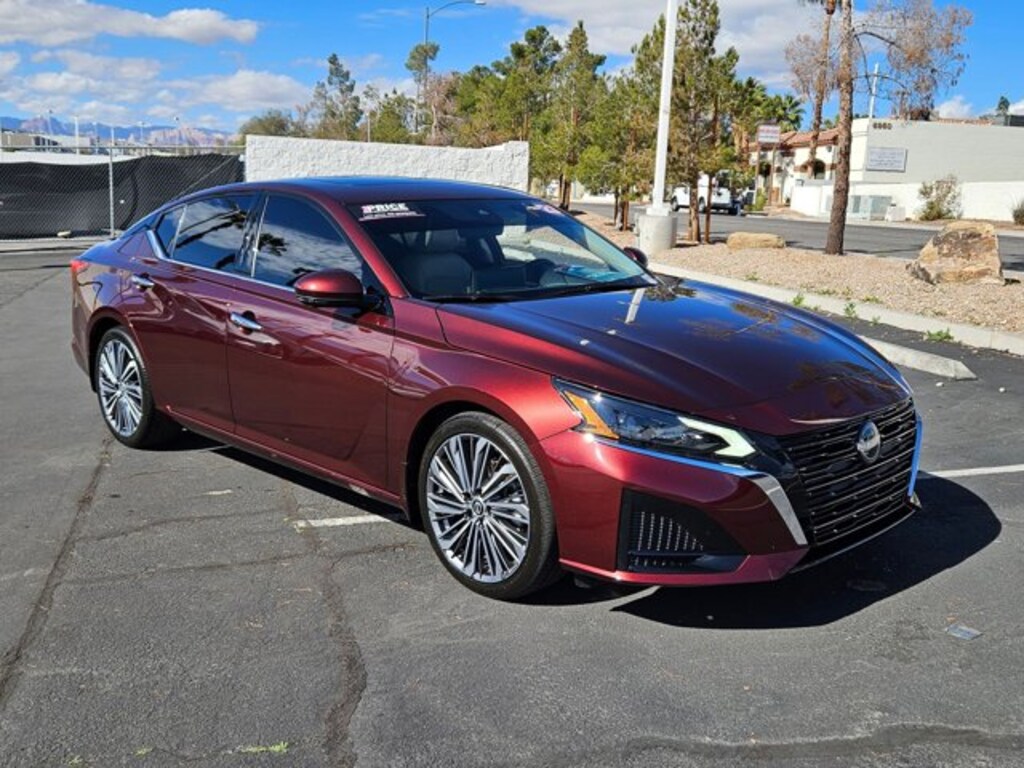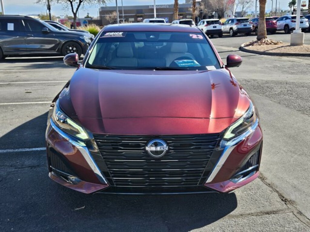 You can find this 2023 Nissan Altima 2.5 SL and many others like it at MINI of Las Vegas. This Nissan includes: [N93] ILLUMINATED KICK PLATES (PIO) [B92] CHROME BUMPER PROTECTOR (PIO) [M92] TRUNK ORGANIZER TRAY [B10] BODY-COLORED SPLASH GUARDS [L94] FLOOR MATS/TRUNK MAT/HIDEAWAY NET Floor Mats GARNET PEARL METALLIC *Note - For third party subscriptions or services, please contact the dealer for more information.* CARFAX shows that this is a one-owner vehicle -- no wonder it's in such great condition. This 2023 Nissan Altima has great acceleration and wonderful styling without sacrificing exceptional fuel economy. One of the best things about this Nissan Altima is that it has low, low mileage. It's ready for you to truly break it in. Added comfort with contemporary style is the leather interior to heighten the quality and craftsmanship for the Nissan Altima 2.5 SL. This 2023 Altima 2.5 SL has extra options like the Nissan navigation system. The additional feature will keep you safe and will make this Nissan Altima even more dependable. Look good driving this beautiful vehicle and feel good knowing it comes with a factory warranty.